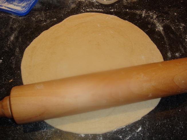 - Divide the dough into 4 parts and make balls. Flat those balls like a roti/ chappati by dusting some aata on it and with the help of rolling pin.